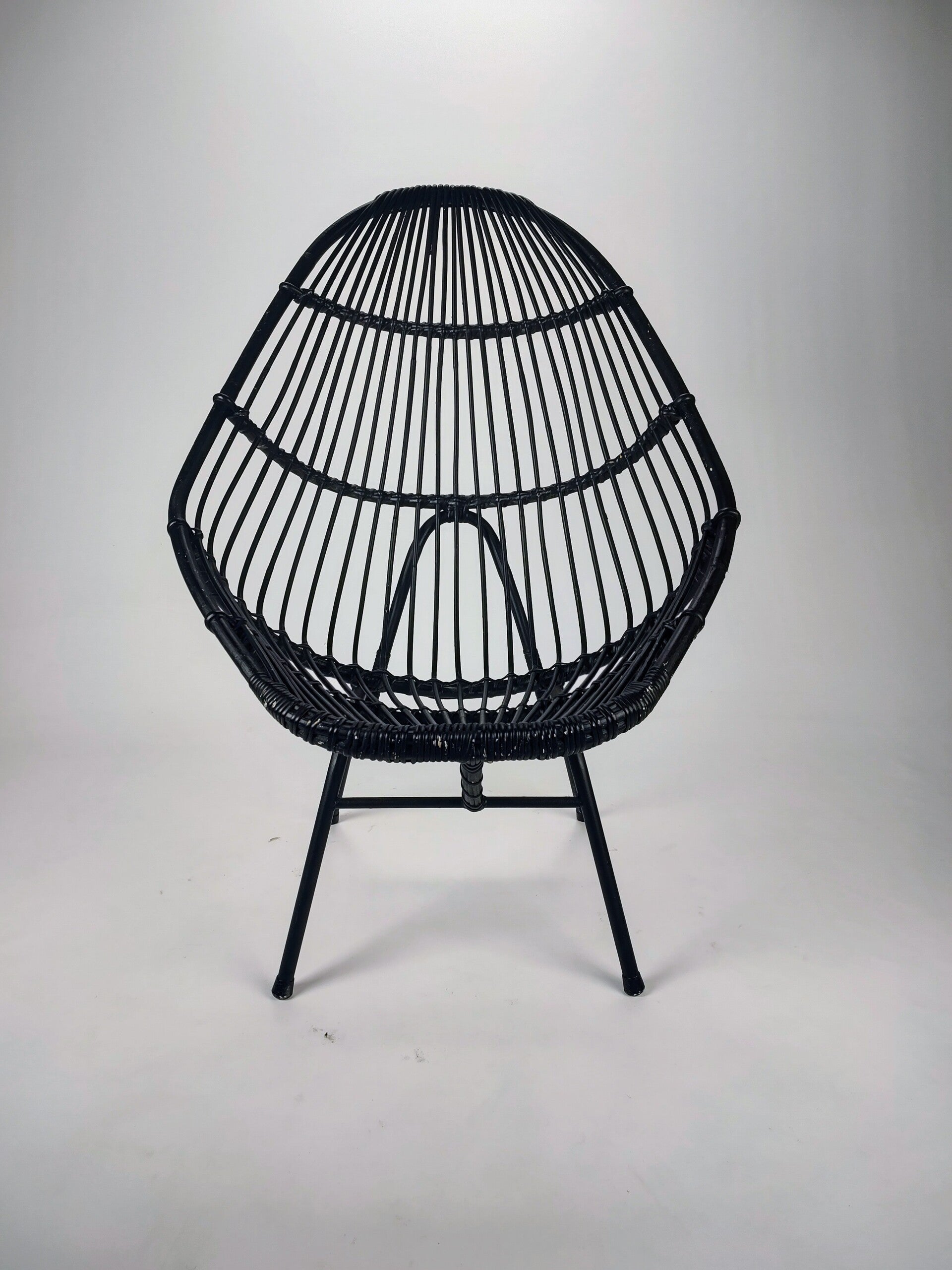 Rattan lounge chair by Dirk van Sliedregt for Rohè Noordwolde 1960s. Black is the original colour