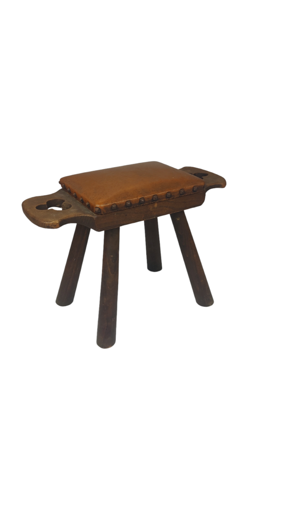Brutalist foot stool from the 1960s. Oak with skai upholstery