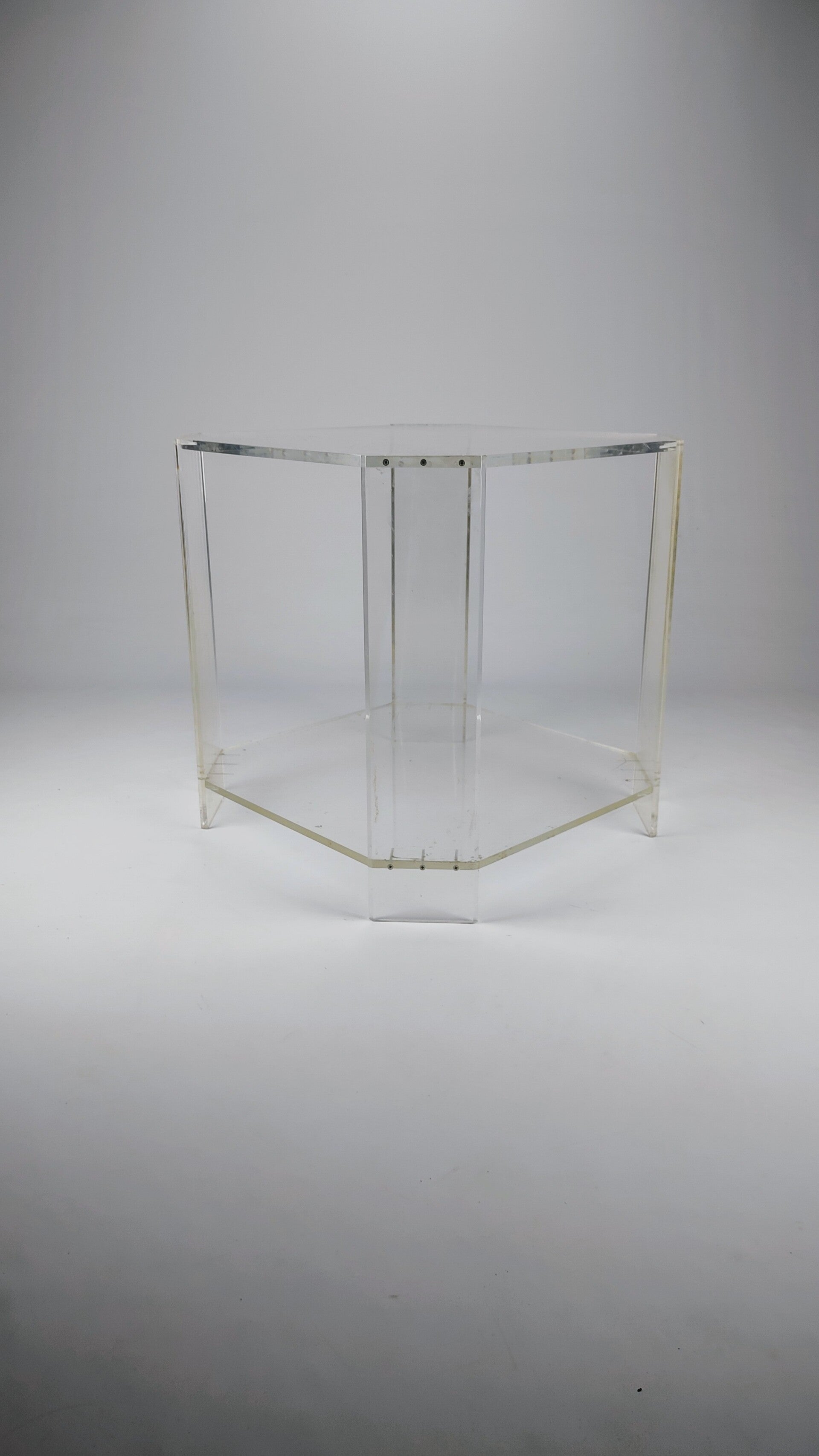 Cool plexiglas sidetable. The item has scratches and traces of usage