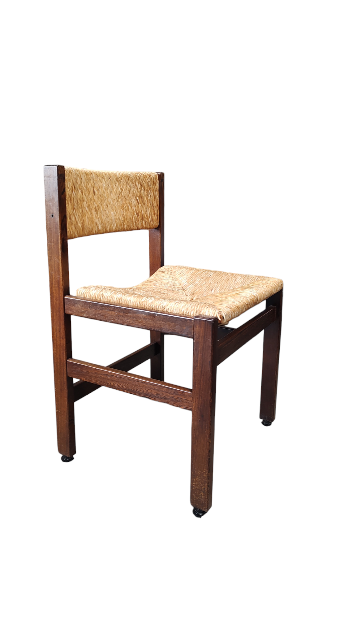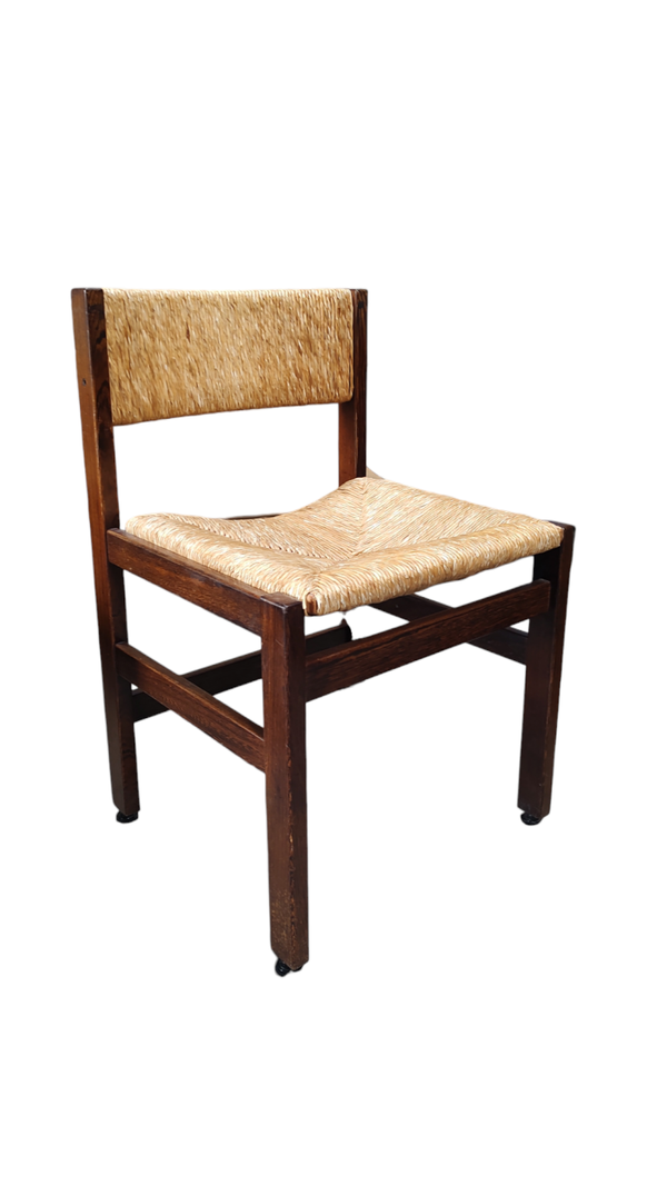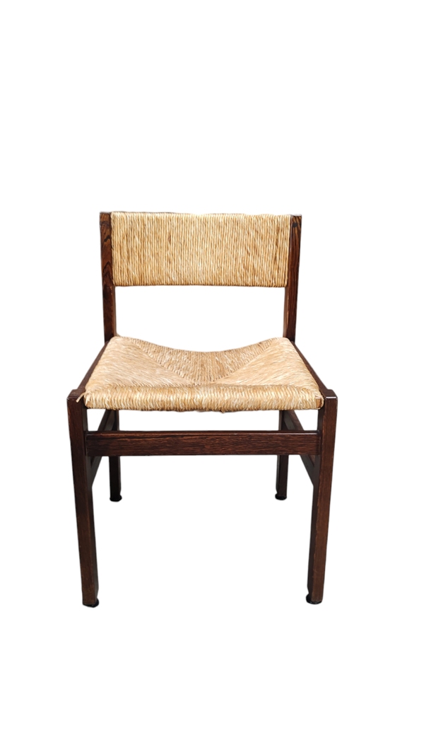 Very nice set of 4 1960s dining chairs in wengé and wicker. Good vintage condition