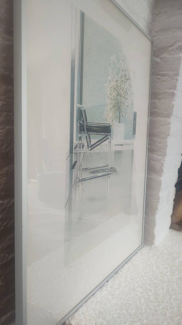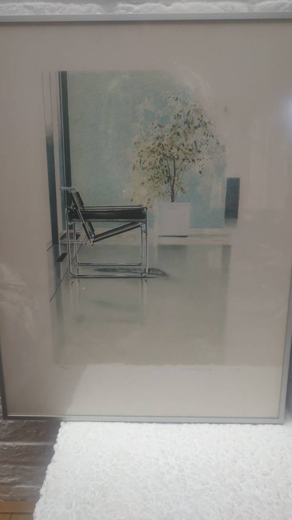 Originele genummerde en gesigneerde litho/grafiek van de Rotterdamse kunstenaar Willem van Veldhuizen. Origineel hangt in Kröller Müller Museum in Arnhem. Het werk is netjes ingelijst en in goede staat. Stilleven van de Wassily chair van Marcel Breuer.