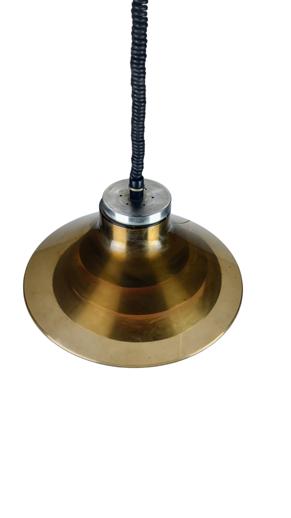 Space age pendant lamp with metal inner shell and acrylic glass outer shell. Has some traces of usage