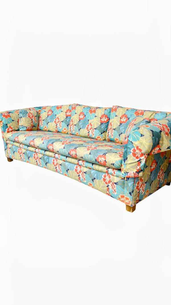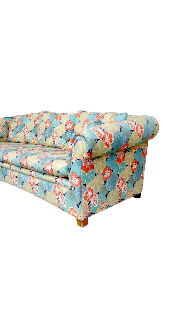 Beautiful three seater sofa by the Dutch company Bench. Upholstery inspired by the gouache "Capucines" by Raoul Dufy. Some super small stanes butt overall in very good condition
