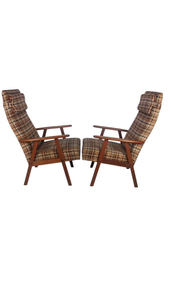 Set of 2 Scandinavian style armchairs in teak and wool upholstery from the 1960s. Very good condition