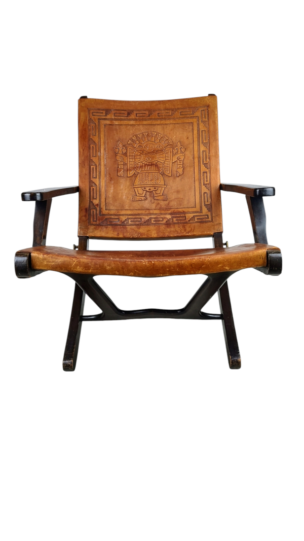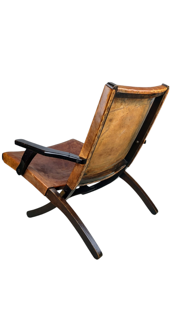 Saddle leather folding chair by Angel Pazmino for Estilo, Ecuador 1960s