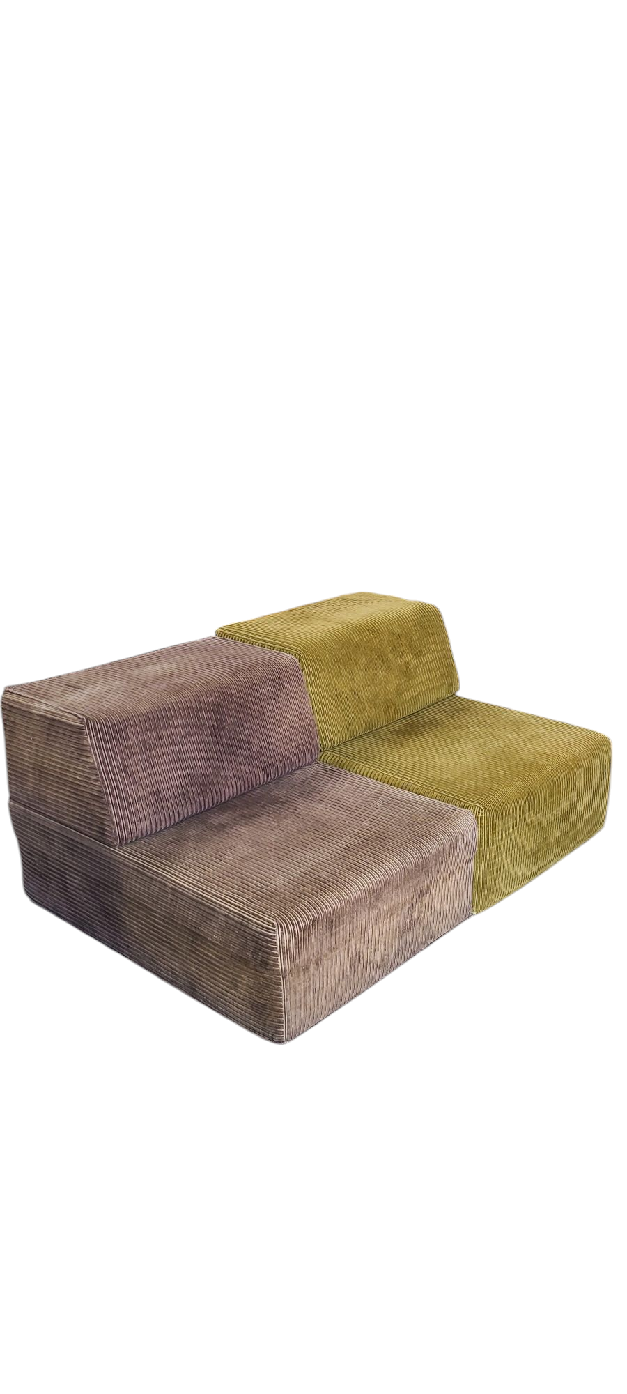 Stylish set of 2 lounge elements in corduroy ophostery. Space age 1970s