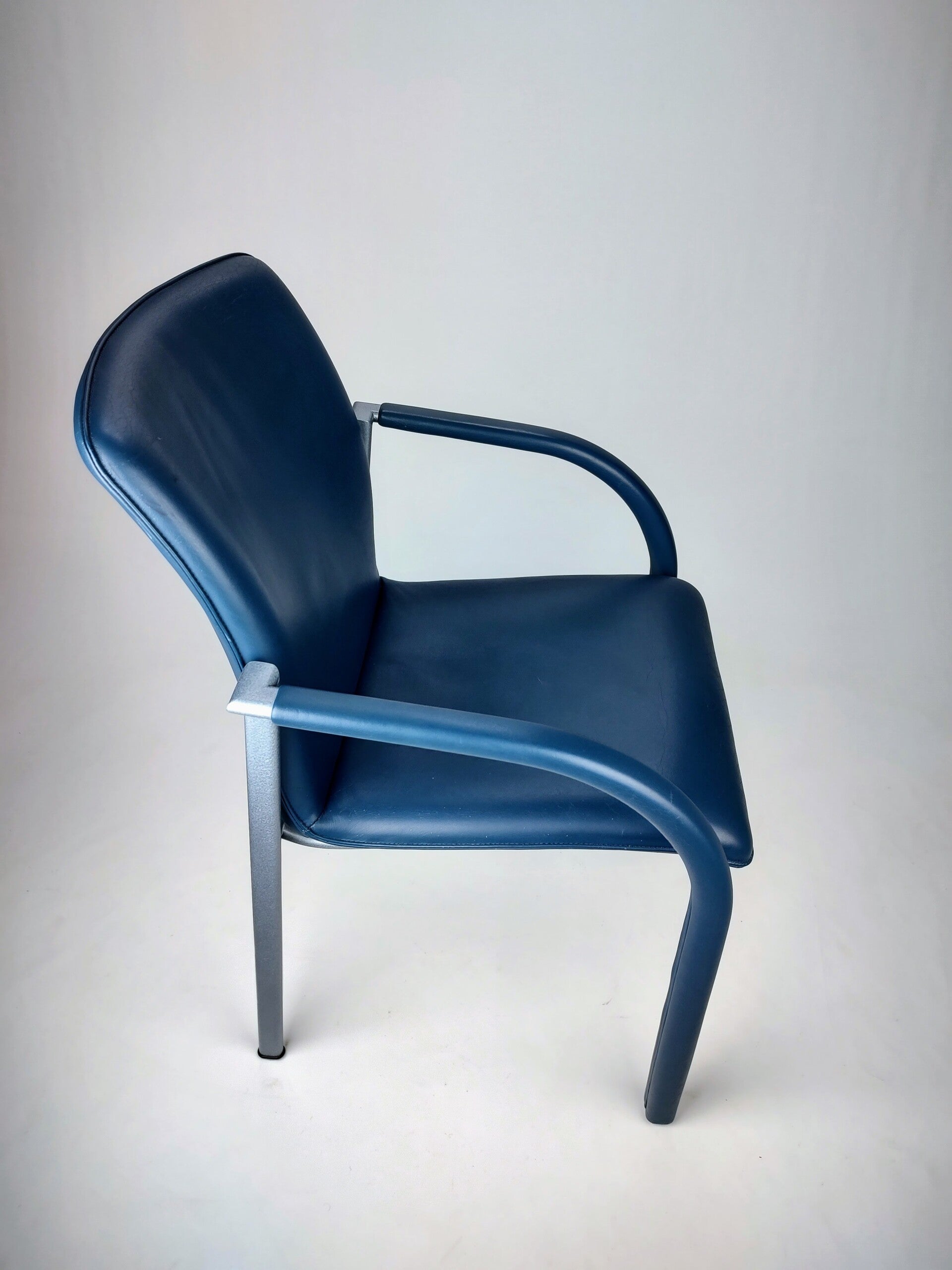 Set of 4 Leolux blue leather dining chairs from the 1990s Small traces of usage.but overall in goog condition
